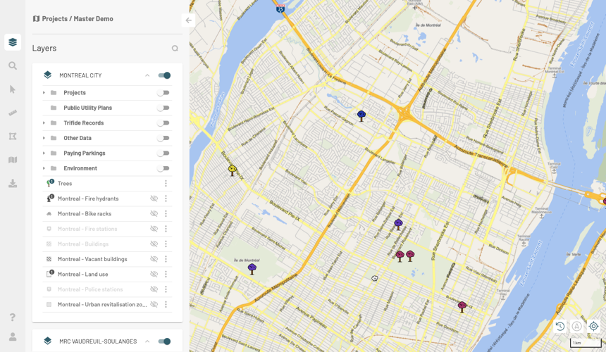 Project properties, layers with their associated spatial data sources, order and hierarchy of layers are reproduced in JMap Cloud. Warning, the link between the project in JMap Server and the project in JMap Cloud is not preserved, therefore, changes in the properties or the order or hierarchy of the layers in the project on JMap Server are not synchronized with JMap Cloud .