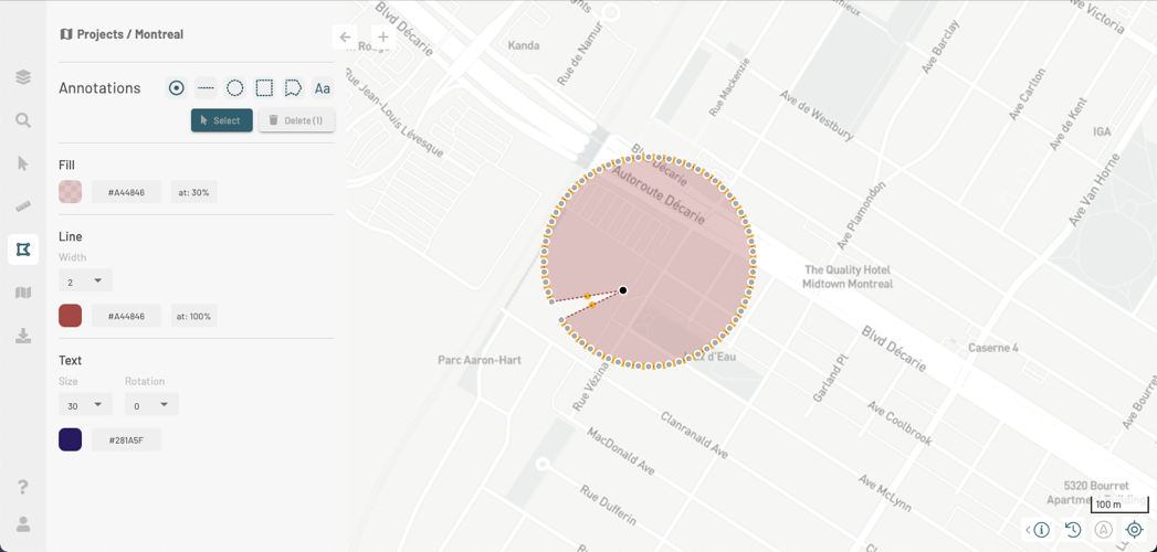 5. Click on another annotation or on the map to unselect the annotations.
