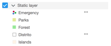 Las capas estáticas son siempre en mosaico y con frecuencia están puestas en caché. Son una buena opción para datos que no cambian con frecuencia. Pueden ser capas base o no. Son menos interactivas que las capas dinámicas. El usuario podrá ver la composición de una capa estática (salvo que sea una capa base) pero no podrá controlar la visibilidad de cada una de las capas que la componen, ni visualizar las temáticas ni editar los datos. El usuario podrá visualizar las infoburbujas y efectuar selecciones interactivas en las capas que componen esta capa estática.