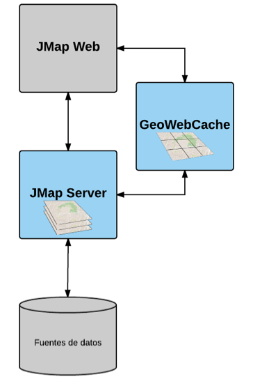 La figura ilustra la utilización de GeoWebCache con JMap.