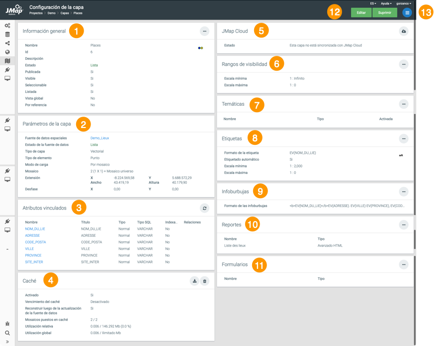 Información general configurada al crear la capa. El botón