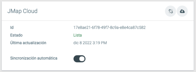 Sincronización automática: Si la función está activada y se efectúa una actualización en JMap Server, los datos se sincronizan automáticamente con JMap Cloud.