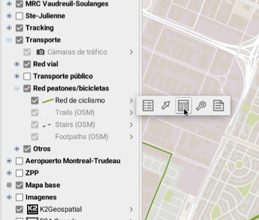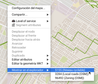 Es posible mostrar la información sobre un elemento en el explorador, a partir del menú contextual del mapa: