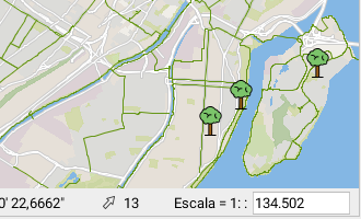 Para seleccionar uno o más elementos trazando un rectángulo. Todos los elementos que están total o parcialmente incluidos en el rectángulo son seleccionados. Se indican las dimensiones del rectángulo. Active la herramienta y trace un rectángulo en el mapa.