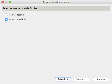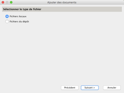 2. Sélectionnez **Fichiers locaux** pour ajouter un nouveau document au dépôt à partir de votre ordinateur.