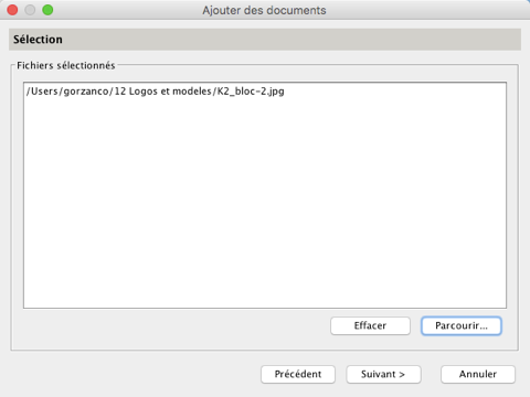3. Cliquez **Suivant** pour sélectionner le ou les documents à associer.