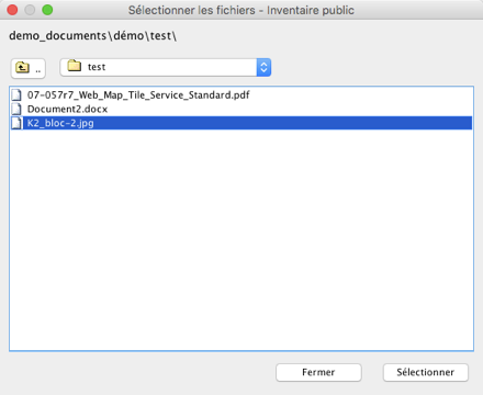 2. Sélectionnez **Fichiers du dépôt** pour associer un document à la sélection.