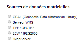 Dans JMap Admin, les images doivent être intégrées en tant que source de données matricielles au moyen de GDAL, une librairie qui supporte plus de 50 formats d'imagerie.