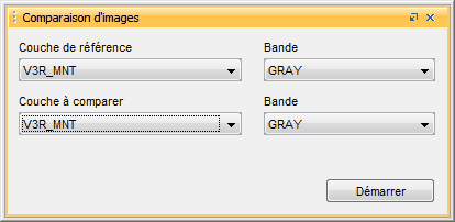 Afin d'utiliser cette fonction, sélectionnez l'outil <img src="https://3048819513-files.gitbook.io/~/files/v0/b/gitbook-x-prod.appspot.com/o/spaces%2FbUcAjuZV4Pk5ljdFZZn6%2Fuploads%2Fgit-blob-09a840eb8f8729921d0ca062b72c3cb864fa3c08%2Fclip0010.png?alt=media" alt="img" data-size="line">. Ensuite, spécifiez les couches à utiliser ainsi que leurs bandes et lancez la comparaison.