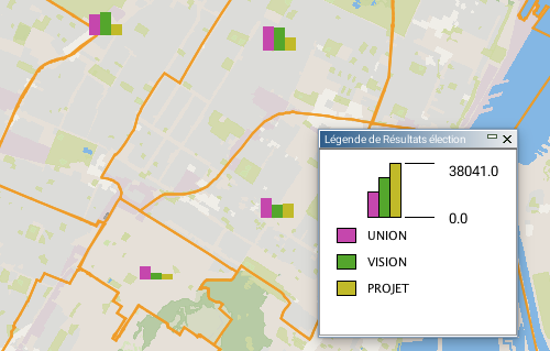 Les thématiques de type diagrammes à barres affichent des diagrammes à barres (aussi appelés histogrammes) superposés au centre des éléments qu'ils qualifient.