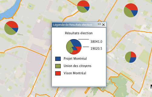 Les thématiques de type symboles proportionnels affichent des symboles circulaires superposés au centre des éléments qu'ils qualifient.