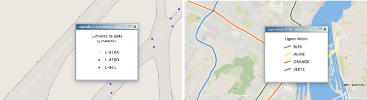 Chaque thématique possède sa propre légende qui peut être affichée à partir du gestionnaire de couches.
