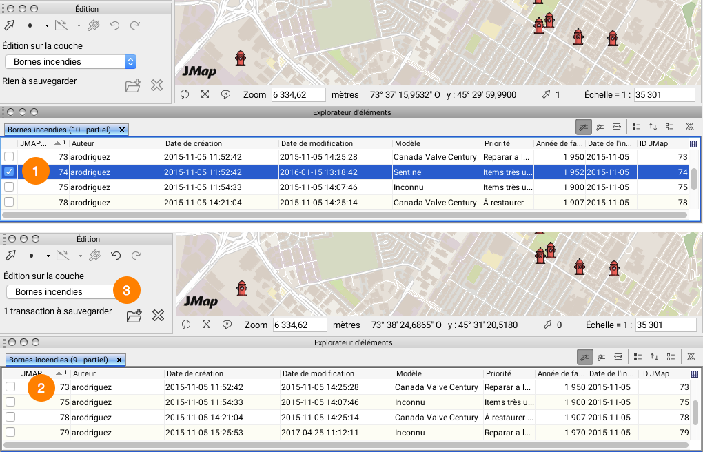 Vous pouvez modifier la localisation, la géométrie ou les attributs des éléments.