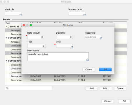 4. Sélectionnez les enregistrements du sous-formulaire que vous désirez modifier et appuyez sur **Éditer**. L'interface du sous-formulaire s'affiche.