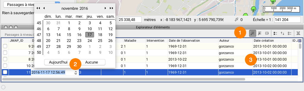 <table data-header-hidden><thead><tr><th width="74.97101449275362"></th><th></th></tr></thead><tbody><tr><td><strong>1</strong></td><td>Appuyez sur <img src="https://3048819513-files.gitbook.io/~/files/v0/b/gitbook-x-prod.appspot.com/o/spaces%2FbUcAjuZV4Pk5ljdFZZn6%2Fuploads%2Fgit-blob-6a4fd180b95cc8d4210509a28cafdd110cca3988%2Fedit_attributes_18x18.jpg?alt=media" alt=""> pour activer le mode d'édition. Dans ce mode, toutes les valeurs des attributs modifiables peuvent être saisies ou modifiées.<br>Cliquez ensuite sur un champ afin de modifier sa valeur. Les champs de type date présentent un calendrier pour faciliter la saisie.<br>Les valeurs saisies sont validées afin d'assurer leur compatibilité avec le type de l'attribut.<br>Pour plus d'information sur le fonctionnement de l'explorateur d'éléments, consultez la section <a href="../explorateur-des-elements">Explorateur des éléments</a>.</td></tr><tr><td><strong>2</strong></td><td>Cliquez sur un champ afin de saisir ou modifier la valeur de l'attribut.</td></tr><tr><td><strong>3</strong></td><td>Certains attributs présents ne peuvent pas être édités (Author, Creation Time, Modification Time, ID JMap). Ce sont des attributs du système et leurs valeurs sont renseignées automatiquement par JMap.</td></tr></tbody></table>