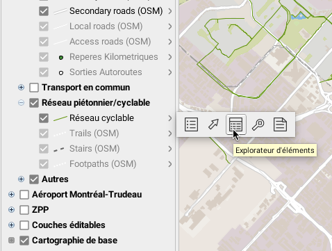 L'explorateur d'éléments s'affiche à partir du **gestionnaire de couches**.