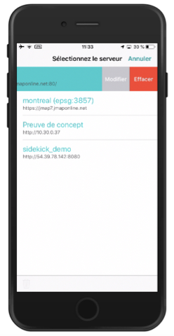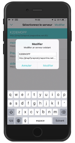 1. Dans l'écran **Sélectionnez le serveur**, touchez **Modifier**.