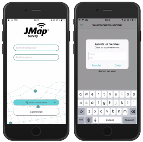JMap Survey se connecte directement aux projets JMap. Pour configurer la première connexion à un projet :